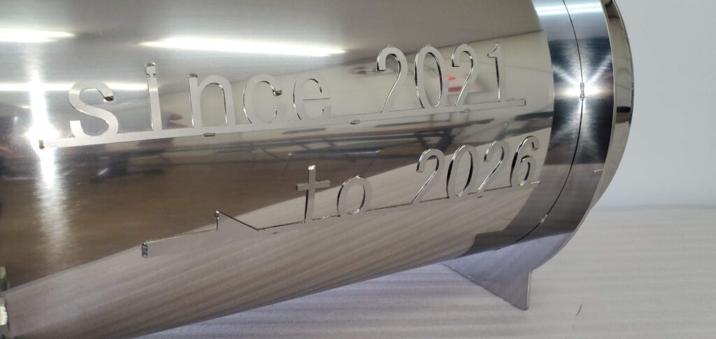 今から五年前、腐れ縁の同級生の友人から依頼されたのが、『”タイムカプセル”を作ってほしい』というものでした。3月に卒業式を迎える中学3年生の父兄からの相談だったそうです。当時コロナウイルスの蔓延していたことで、中学3年間は行事のほとんどが無くなり、マスクを外して大声で笑い合えない中学生活を余儀なくされた彼らに、5年後には明るい未来が必ずあって、この辛い時期を思い出に、みんなでマスク無しで思いっきり飲み食いして、笑ってほしいというメッセージを残してあげたいお父さんお母さんの発案が、タイムカプセルだったんです。当時、我社もコロナで仕事が減り、もがいていた時期だでもあり、時間もあったので一から設計して、こだわって作りました。オールステンレス製でピカピカに磨いて輝かせました。そして両親からの手紙と、未来の自分にメッセージを書き、中学校の校庭に埋められました。